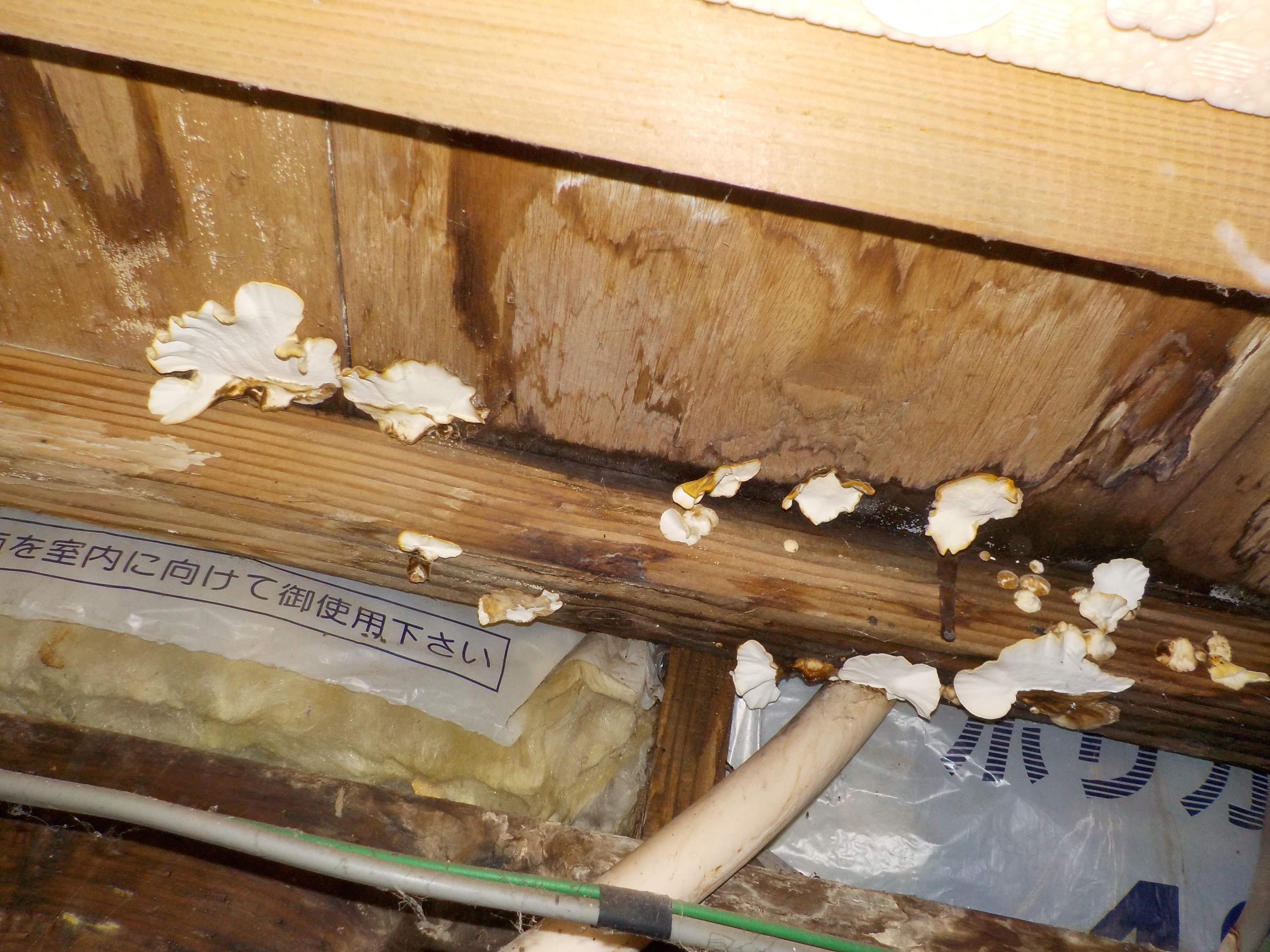 床板水漏れによるキノコの発生