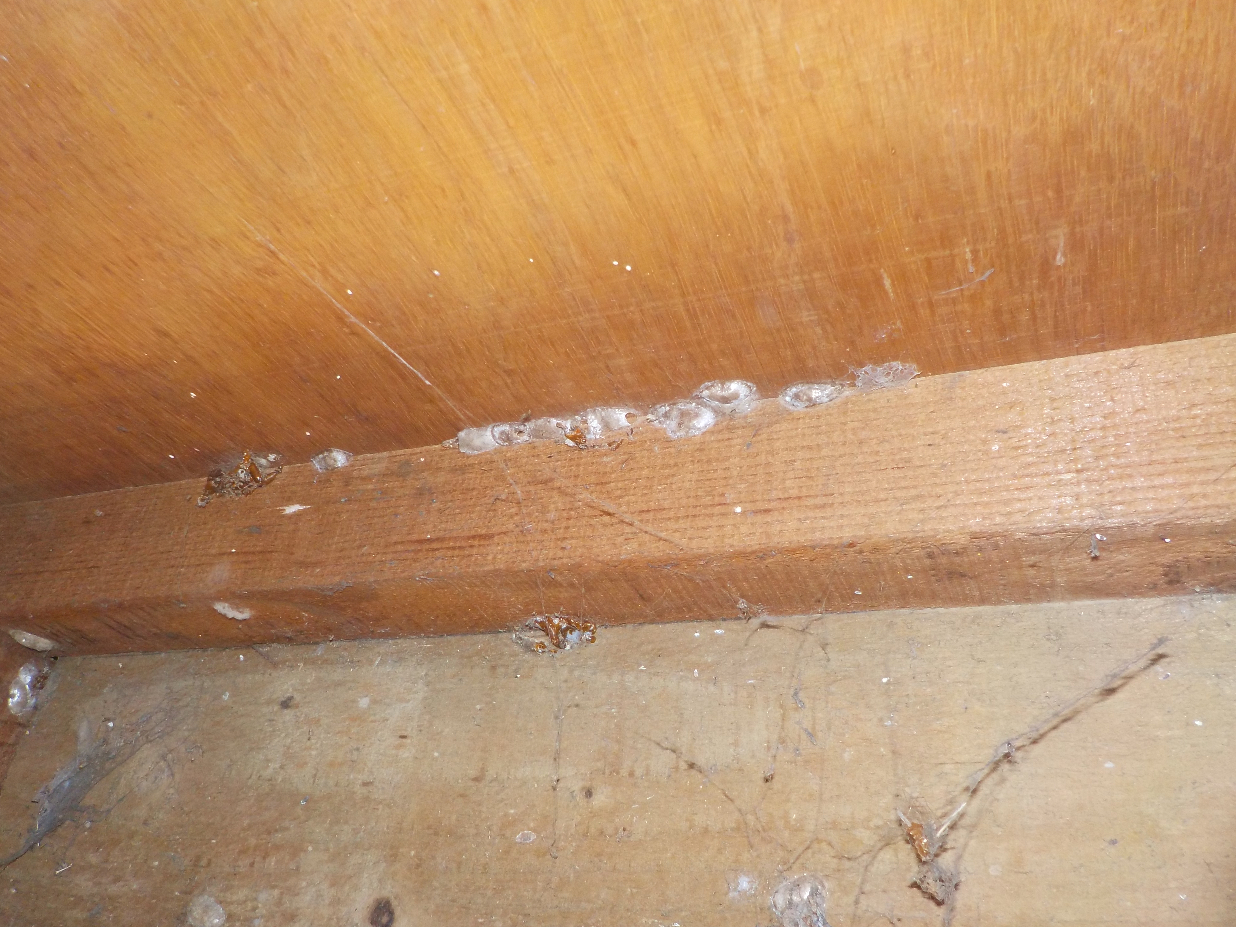 床下土台部分に産み付けられたゴキブリの卵