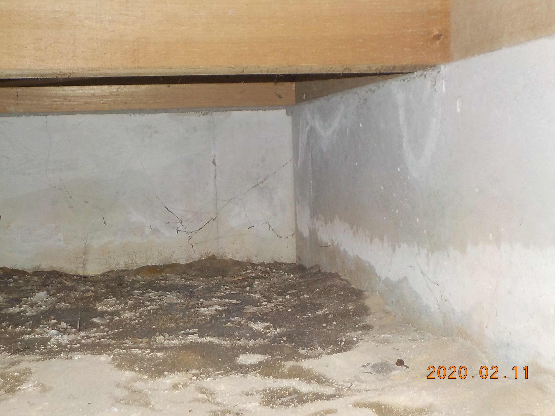 床下土台部分の全体にわたる白カビ
